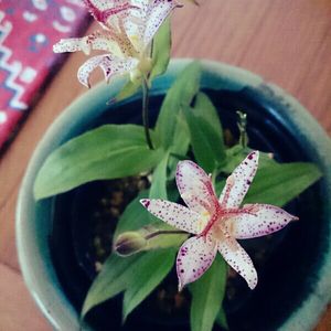 おはようございます* ホトトギス〜白秋(はくしゅう)〜 とても丈夫です* 漢字で書くと "時鳥" "杜鵑" "不如帰"・・・ 色々あるようですが覚えきれません😅 白い花弁に紫の斑点が薄く入り 派手さはありませんがほかのホトトギスと比べ少し🤏 優しく上品さもあるようにも感じられます(^.^) 9月にお迎えし3.5号山野草鉢の土のお布団の中で 今も❗️次々と長く咲いてくれて… 毎日可愛いお顔を見るとホッとします(*^^*) (^-^)今日もみなさんにとって 良いことがたくさんありますように★∻∹⋰⋰