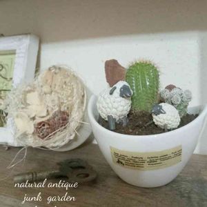 ダイソーで売られてた食器にダイソー産のサボさんを入れて、寄せ植え作ってみました( *´艸`)羊だけ雑貨屋さんのものです。可愛い~(о´∀`о)♪