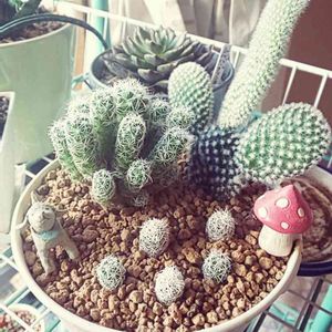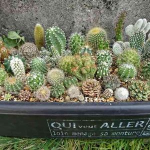 サボテンは寄せ植えさせたほうがいいという話を本で読んでさっそく… ただセンスがないので詰めこんだ感が半端ないものに😅 徒長してる子もちらほらで😅 まぁいっかぁ(笑)
