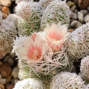 サボテン🌵の銀テマリが花を咲かせました 今年、防寒は簡易温室のビニールのみなんですが、暖冬なので大丈夫👌 赤花銀テマリも蕾はついてるんだけど、咲きそうにありません💧
