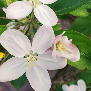 リンゴのお花💮黄金丸参上😁 公園の隅っこ暮らしなのね~気がつかなかったわ~😆 桜のような可愛いお花💮だったのね🥰💞