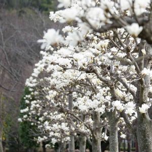 散歩コース 公園近くの畑に木蓮の並木がありました