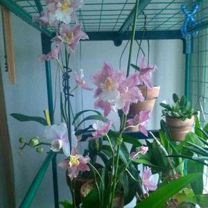タイムラインやっと追いついた😅 多肉ちゃん達に棚を奪われ、吊るされた洋ランさん達😁 タヒチアンダンサー"ランババ"さんには蕾が。 エピデンドラム ピンクパールさんには花芽が伸びてきました😄 開花🌸が楽しみ😆✨