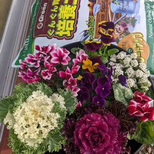 ピンク色が、可愛いぃ~サクラソウ。ピンポイントに、引き立て役になってますね。センターを守ってくれています。🙋🥳🥹😄🥰🤩