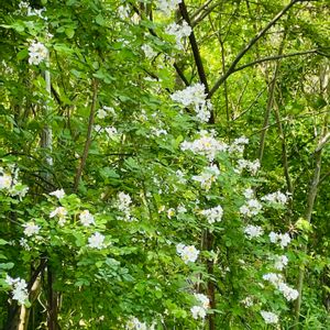 2023.5.12 Friday 🌤 空気が冷たく感じます。 初夏のお花が次々と咲き出してます。 お花は、今日のお花のノイバラ(野茨、野薔薇) 木々の草の中にひっそりではなく、白く輝いて咲いてました。 素晴らしい薔薇の花々に魅せられてお腹(?)がいっぱいになった頃、林の淵に咲く野薔薇が新鮮でした。
