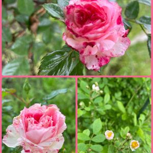 山野草のコーナーで売られていたバラたちです💚💚💚 右上下のpic 姫バラみさきは枝が折れたので空いている鉢に差し込んだら 根づいて花が咲いてくれている💛 左下のpic 桃色吉田バラというラベルがついていました💛 左中のpic 名無しさんですが赤花ノイバラかも⁈💛 左上のpic 右端の真っ赤なバラは 昨年は2輪、今年は3輪💛 ミニミニバラという葉が小さいものがありますが 昨年折れたのを盆栽仕立てにしたこも花芽は無し😢 ミニバラであるノイバラ系のバラたちは結構強いのですね💛 咲いてくれてありがとう(⋈◍>◡<◍)。✧♡ 私も頑張る(水やりです)から次も咲いてね(⋈◍>◡<◍)。✧♡