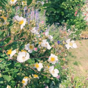 おはようございます☁ 今朝は17℃🤗 二十四節気 小満(21日〜5日) この時期のお花 薔薇をアップしますね♡♡ ノイバラです😋 純白な花びらに♡に💛の蕊がとても綺麗です👍 このノイバラのミニ盆栽を作りたいです💪 (o^∀^o)