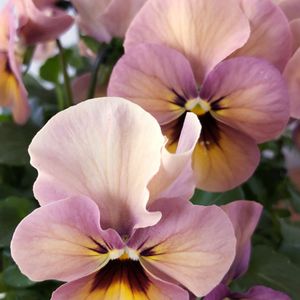 風は冷たいけど良い☀️天気です😊 近所の花屋さんの前を通りかかり見つけて一目惚れ😍 ビオラ100円アソートのカゴの中に一株だけ紛れてた、アンティークな色味が✨お洒落な娘❣️