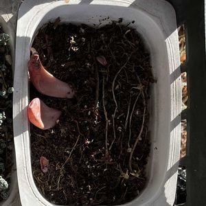 久しぶりに多肉植物よく観察してみたら、寒さでやられてしまった子たちを散見。 ショックをうけつつ自業自得なので、無事な子を植え替えすることにしました。 そしたら、まさかの発見が! プレタの葉挿し、根が出た2枚をずっと挿しっぱなしにしてたんですね。 一つ目は根が伸びているだけで変化なしでしたが、2つ目を引っこ抜いたら、土の中で芽が出て成長しておりました!! 反対側に成長することもあるんですね〜 今成長期ではないのに、隠れてこんなに大きくなってくれてるなんてびっくり!嬉しいよ。 秋から冬は葉挿しでもあんまり水をあげないほうがいいのかなと思って放置してましたが、個体差で違いが出るんですね。 土はいつもの葉挿し用鹿沼土とか赤玉土ではなく、ダイソー多肉鉢を植え替える時に、使われてた土を再利用したものです。 なかなか写真を撮ってもGSにあげることができませんが、久々驚きの報告でした。 追伸:肝心のプレタさんの写真を載せるのを忘れておりましたので、別口で載せます。