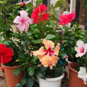 こんにちは👋😃 今日は、雲ってて暑さは、ましですね。 うちのハイビちゃん達なにやらお話してます🌺