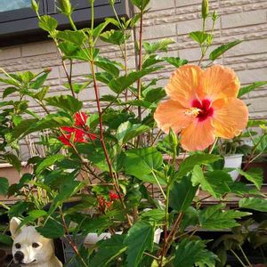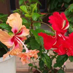 おはようございます((o(^∇^)o)) 今朝のハイビスカス🌺 フラミンゴちゃん💛❤️ オレンジとレッド、並べて記念撮影📷️