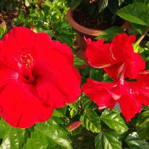 2年目のハイビスカスレッドスターちゃん。 こちらも二個咲き❤️❤️ 今日は、二個咲きが多いなぁ🌺 離れて咲いていたので、ツーショットが撮れない😬