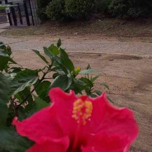 今朝のハイビスカスのシンデレラちゃん、 久しぶりに咲きました🌺 申し訳なさそうにしてます😮