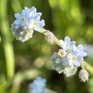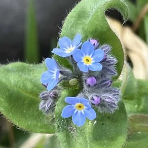 🩵💛💚キュウリグサ? →ノハラムラサキ?→ハマワスレナグサ! カラフル〜 早咲きのバラに会いに行ったのですが、まだチューリップ🌷フジ、ボタンの季節でした💦 オオタカネバラの手前の階段で見つけたキュウリグサ?がとてもカラフルで接写を試みましたがピントが合わないまま💦 色彩だけ