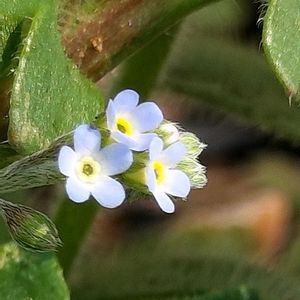 ノハラムラサキ (野原紫) ムラサキ科 ワスレナグサ属 4~7月(春~夏) 約50cm なんて可愛いんだろ😆 姉妹のよう🩵 サソリ形花序🦂 花径3mm前後 花冠中央に放射状の白い膨らみ✨ 全体に白色の軟毛があり、萼には鉤状毛が密生 『私を忘れないで』『誠の愛』