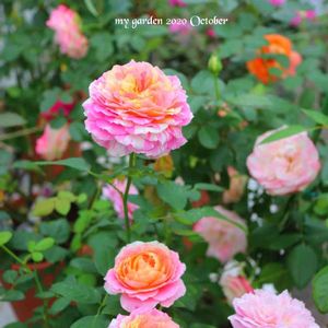 秋が大好きな薔薇クロードモネさん ココロが明るくなるような ピンクとイエローのグラデーションです ワクワクをありがとう😊