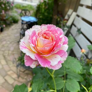 クロードモネ🌹 クロード・モネは印象派の巨匠、光の画家「モネ」に捧げられた薔薇です。 ピンクに淡いオレンジイエローの絞りが入るロゼット咲きのかわいい薔薇🌹 独特の華やかさと愛らしさがあります。 はじめはペールピンクにアイボリーがかるアプリコット、次第に全体がうっすらとやさしい色彩に。 まるで「モネ」の画風のよう💕 香りもとても好きな香りでうっとりします💕💕💕 きわめて四季咲性が強く、この時期から12月くらいまで 咲き続けてくれます💪 また耐病性も非常に強い品種です👍👍👍😃😃😃