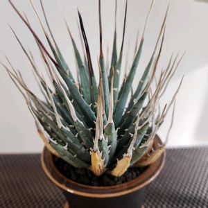 アガベ ユタエンシス ネバデンシス 実生 シャトルバスを待ってる間、少し時間があったので植物を見に行ったのですが。 一株だけ異彩を放っていた🫢 短葉!陽炎!白肌!だなと思い購入‼️ 家に帰って早速、殺菌殺虫をして植え替えしました。 早くうちの環境に慣れてもらいたいですね😌