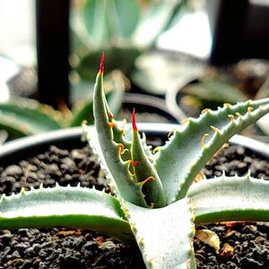 Agave uthaensis var. eborispina 当方実生のエボリスピナ☘ 5粒蒔いて3つ発芽、そのうちの1つが明らかにノギの感じが厳ついのが出て来ました! 無事に大きく育てたいですね・ω・