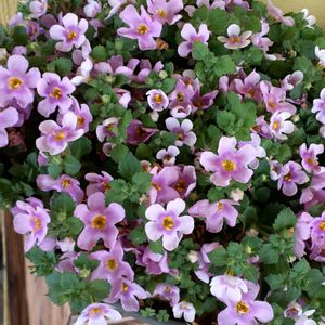 2024.2.26 ⛅のち晴れ [ステラスコピア(バコパ)] まだまだ寒い~😓 歯医者さんの玄関にかわいいお花が、真っ盛り。 小さい苗から育てたそうです🎵😍🎵 私は、初対面です。