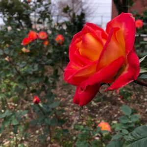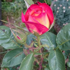 濃黄に赤の覆輪のハイブリッドティ系のバラさん🌹 毎年見ていますが、肉厚の花弁は雨や日光に強いようです♩ あともう少しですかね(^^) 2019.05.02撮影