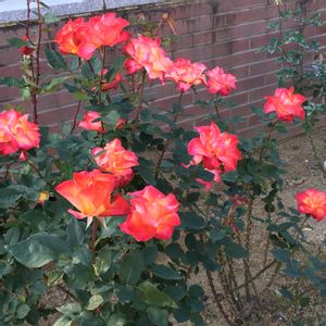 2018.5.19 神奈川県綾瀬市、光陵公園にて Alinka 赤色の花弁の底に黄色が入るカップ咲き 黄色というかオレンジ色になってました。