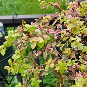 【ヒペリカム トリカラー】 🍀今日のお花🍀 今撮りです🥰 ピンク色に色付いてきてます🩷 今夏の猛暑で葉焼けが酷かったのでちょこちょこ葉焼け部分をカット✂️してたらほとんど葉っぱがなくなりました💦 それでもちゃんと育ってくれて嬉しいです💕 まだ葉っぱが小さいけどね~😅