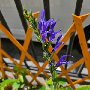 【メドーセージ】 昨年、メドーセージはもう諦めて一線から退いてもらいました そしたらなんと今は庭の裏側でハバをきかせていました😂 しぶといメド君だわ💜😂💜 一緒に退いてもらったカンパニュラ君も隣にいるけど、咲いてくれるのだろうか?