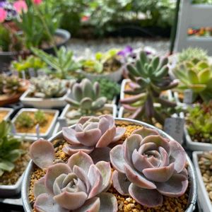昨日産直で「多肉植物展示 販売」と📰新聞記事に🪴 ど田舎で珍しい事😆近くだし早めに行ってみた🚗 軒下にささやかな数が並んでた🪴 初めてのことらしく 本人の代わりに 叔母さんが留守番してた 2個選び レジ脇に置かせていただいて 野菜みてるうちに 店員さんが 袋に入れてくれた 😭多分その時に触っちゃったみたいで 持ち帰って出したら 葉っぱがグラグラ😢 「ブラックプリンス」君6枚葉っぱを外した〜💧 茎の太さも🥰だったからまぁいいかな〜 葉挿しの上手な方〜📣 コツを教えて下さい🙇♀️ もうI個は🩵ブルーサプライズ🪴 ほんのりピンクなんだけど😍 可愛い🩷
