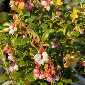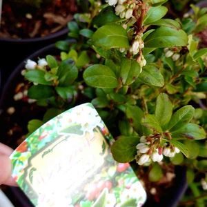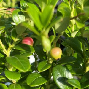 おはよーリンゴンベリー✨ 小さな実がうっすら色づいてます🍏 枝先の房はつぼみっぽい🥰🍵