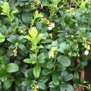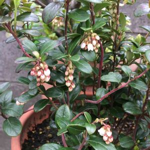 リンゴンベリー なかなか咲いた全部の花が実にはなってくれない〜😂 緑の実も落ちないでね💦