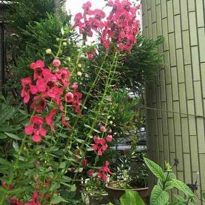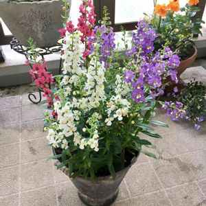アンゲロニアの花、大きな口を開けて、白いのが牙に見えるのは私だけ…🎶 初夏から秋の長い間、花を楽しむことができます!