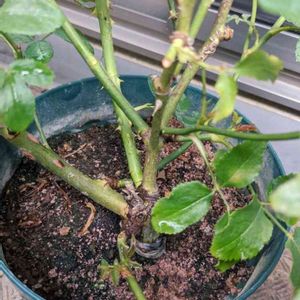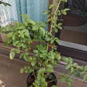 咲いてきました🌹 (*^.^*) 約一ヶ月前、見切り品の🌹 葉っぱ🌿も穴だらけだったけど今は、蕾も、えーと?いくっだったかなぁー ああ〰️😱💦大変😨 💦 今、蕾を確認しにいったら、枝の付け根が折れてたぁー😭 この枝、横に延びて沢山の蕾をつけていたので、風もあり重たかったのかも😓 取れてはいない部分があるから、棒で支えて縛ってきました😨もうだめかも😓😰 蕾、7つもありました😓