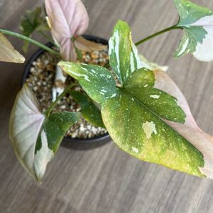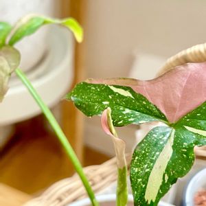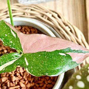 梅雨らしくよく読めない天気が続いてます💦 昼前は曇ってても一時的に日差しがあったり、急に暗くなったり、台風のような突風が吹いたりで、洗濯物は半乾き位には乾いたから、除湿機でカラッとさせるだけで済んだのは良かったです💦 そろそろお布団を干したい… 植物達は相変わらず元気です✨ 冬場成長が、止まってたシンゴニウムのトリカラーですが、休眠明けに真っピンクの葉っぱを出してたので、嫌な予感してましたが、くっきり緑と僅かな白斑が入った葉っぱがでました😍 可愛い🩷 バンビーノのピンク斑は、今回もうっすらピンクがかった斑でした☺️ なぜか、下側がくびれてるひょうたんみたいな形の葉っぱが出ました😂 これも味だな🤔 KOS×レッドクリスタリナムは大きくなって、葉脈の赤みが出て可愛いです😍 レッドクリスタリナムいいなぁ☺️ 藤川さんのネオレゲリア、お迎えしてから用土に刺して動かさないようにしてましたが、全然根が張らなかったので、水差ししたら4日で根っこゼロから4本でてきました🙌🏼 なので、早速用土に植えて管理します☺️ 梅雨は根が出るの早い😂 最近ジメジメが続いてたせいか、ドラゲッティちゃんの鉢にししゃもの卵みたいな気持ち悪い胞子みたいなのがついてたので、急遽植え替えしました💦 根っこは元気でしたが、かなり鉢がパンパンだったので、弱るの覚悟で根っこの整理をしました😣 葉っぱも2枚残しで、ちょっと小さくなってくれるとありがたいなあ😣