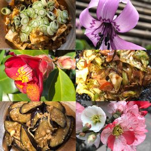 春彩(はるいろ)・・・23 創作ひろしの晩ごはん物語🍲🥬🥙 今夜も最近の三日分のレシピは、 麻婆豆腐と回鍋肉そして茄子炒め🍆 💐片栗と、椿に木瓜さん達です! おまちぃ!! さぁ、今夜も野菜がめーんですょ!