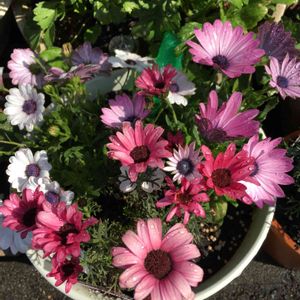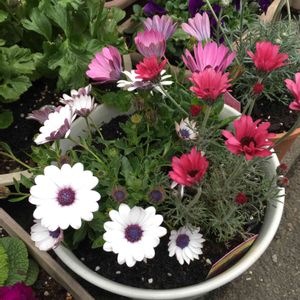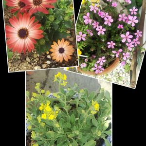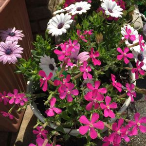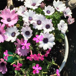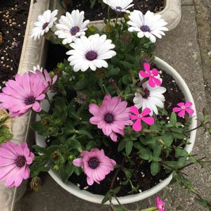 ディモルフォセカンド白と紫にピンクの花 (名前は忘れました)寄せ植えしました👍😊
