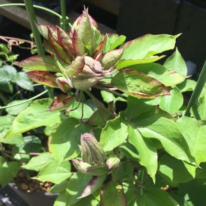 クレマチス 🔥火炎🔥 花姿が炎のように見えるからこのお名前なんでしょうね❣️ 去年見切り品でお迎えしたので、ちゃんと咲いた姿を見るのは初めてです。こんな花が10個は咲きそうなので、メラメラに見えるかな😅