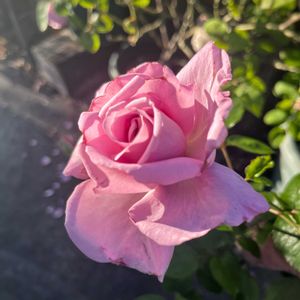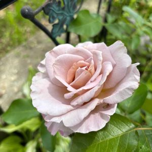 ローズジネルジック シナクティフの名も… 青みがかったピンクがお気に入りの薔薇🩷🌹🍃 香をお届け出来ないのが、残念。小雨混じりの朝は、しっとり…エントランスの顔🩷🌹🍃