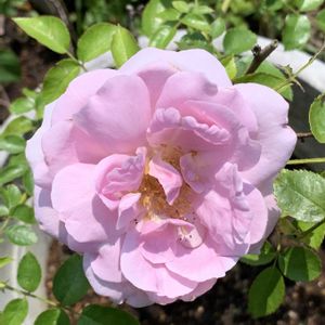 ローズシナクティフ頑張っています。 いつもは,もう少し紫がかった色なのですが,暑さのせいかピンク🩷です。