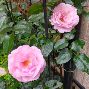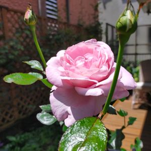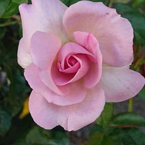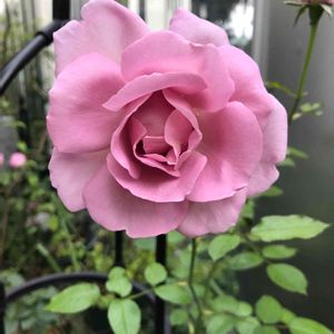 淡いピンク色できれいな形のバラです。 知らべてみると、もっと紫色に近いらしいですが、光の加減で明るく見えるのかな〜?