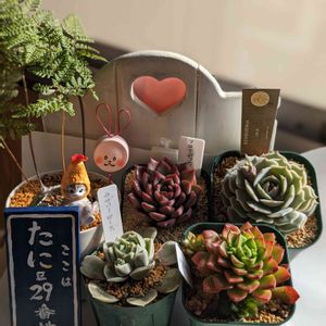 錦の日🏷 牛の日🏷 投稿させて頂きます🐮🌿 ニャンニャン祭りでも投稿したけど モフサンドの可愛さにキュンです🫰💕 色んな被りものにゃんがいるのね 沼にはまると大変そうだから ほどほどにグッズ集めてみたいな♪ 火祭りの光 火祭りの錦なんですよね 我が家は火祭りやモフモフ系多肉が うどん粉病やさび病になりやすくて お迎えするのはもうやめようと思ってましたが お店で見つけたら やっぱりお迎えしてしまいました 今度こそ病気にならないように 気を付けたい!と思うのですが 酒蔵味噌蔵と同じで 我が家の庭に 菌が常に住み着いているのなら 防ぐのは難しいのかな… 斑入りタイトゴメ 一度失敗してるのでリベンジ 今度は元気に増えてほしい 白水晶という名でお迎えしたハオルチアは ピリフェラ錦ともいうのかしら −7度の寒波も大丈夫だったね〜 もうお迎えして6〜7年くらい 一度も植え替えしてないけど 元気に増殖してくれてありがたいです🪴✨