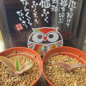 今月の 忘備録さんアガベビー 左のは土の乾きも早くて 水やりも回数多いですね〜 右のはややお休みモードに なりますかな〜 この琉球ガラス細工は 初めて沖縄に行った時に 一目惚れして買ったものです 30年前〜😱 早いな月日の流れ💦 当時奮発して 買ったはいいけど😅 どうやって持って帰る? ってヒヤヒヤしたな〜 いい思い出👍 それからというもの 沖縄大好きです👏👏👏 あ〜また行きたい アガベから話が逸れた💦 また1月のアガベビーですね😊