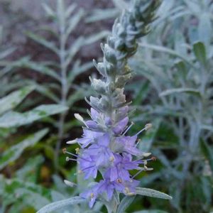 トウテイラン(洞庭藍) ゴマノハグサ科クワガタソウ属 多年草 シルバーリーフってやっぱりいいね😄💖✨ ̈❁* 花言葉 ❁*.゚ 汚れのない心 <追記> ポップ調モードで撮影したものでした。スマホからの投稿で情報見えなくて、私自身も気づかず💦実際は薄紫色です🙇♀️