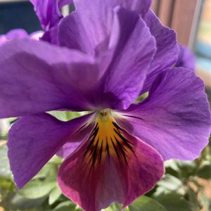 ビオラ エボルベ オーララ! パンジー並みの大きな花弁は、『反転咲き』に『青染み』のエボルベカラー💜🩷❤️🌱 しばしの日光浴楽しんで!