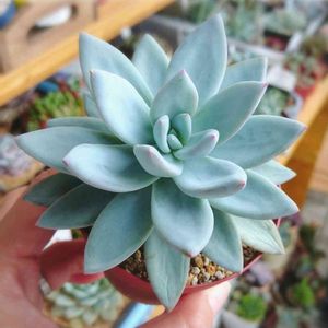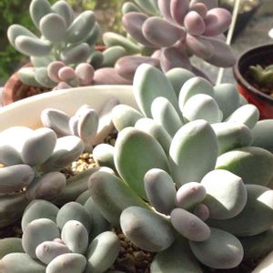 霜の朝(しものあした) パキベリア パウダーパフ Pachyveria 'Powder Puff' Pachyphytum oviferum x Echeveria cante ブルー系の多肉大好き❤ 触ると粉が取れちゃうから、植え替え悩むー💦💦