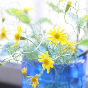 こぼれ種から育ったダークベルクデージー ひょろひょろに伸びながら 咲いています🌼*・ あっちこっちにお顔を向けて ほんとに可愛ったら✧*。(ˊᗜˋ*)✧*。 何輪か✄してキッチンの窓辺に◌𓈒𓂃◌𓈒𓐍◌𓈒 𓈒◌𓐍𓈒◌ 繊細な葉に触れるとお線香のような香りがふわり𓂃 𓈒𓏸 この香りを嗅ぐと落ち着くんだよね😌
