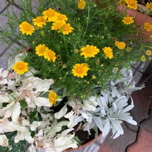 こんにちは☁️ ついこの間まで、 暑いなぁ〜と思っていたら… もう10月なんですね〜 早いものです🥺 気温が下がると同時に、 冬に室内へ入れる草花の準備に 取り掛かっています。 秋はとても短いですからね🍁 ダークベルクデージー🌼🌼🌼 鉢植えです♪ 夏の間、枯れそうでしたが… なんとか持ちこたえてくれました。