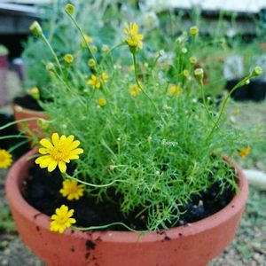 この黄色いお花は何だっけ🌼😆 GSで見て書き留めておくのを忘れました💦 昨年の春に市の方からいただいて 切り戻しを繰り返しながらずーっと咲いてます🌼 種が飛ぶようでほかの鉢からも咲いてます🌼 小さなお花ですが、グリーンの中のアクセントになって気に入ってます〜💚
