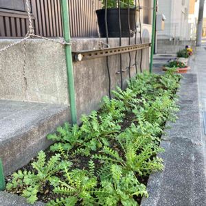 チューリップ🌷の上に植えたネモフィラがやたら元気 中にはツボミらしきものも見えるので もしかすると予想より 早く咲き始めるかもしれません 陽当たりがあまり良くないので 少し徒長気味な気もします