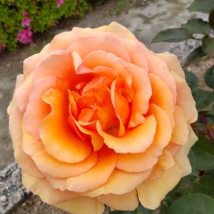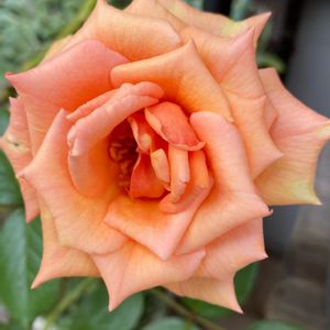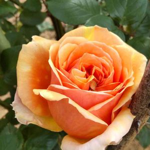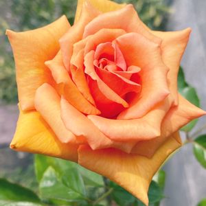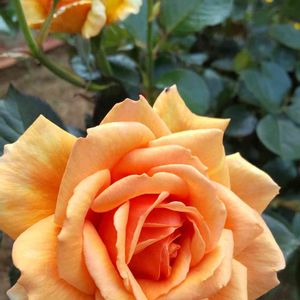 『アシュラム』 唯一のオレンジ色のバラなので大事にしたいです🌹 千歳 26℃ くもり 本州の皆様、台風の影響がでないように祈ってます🌸